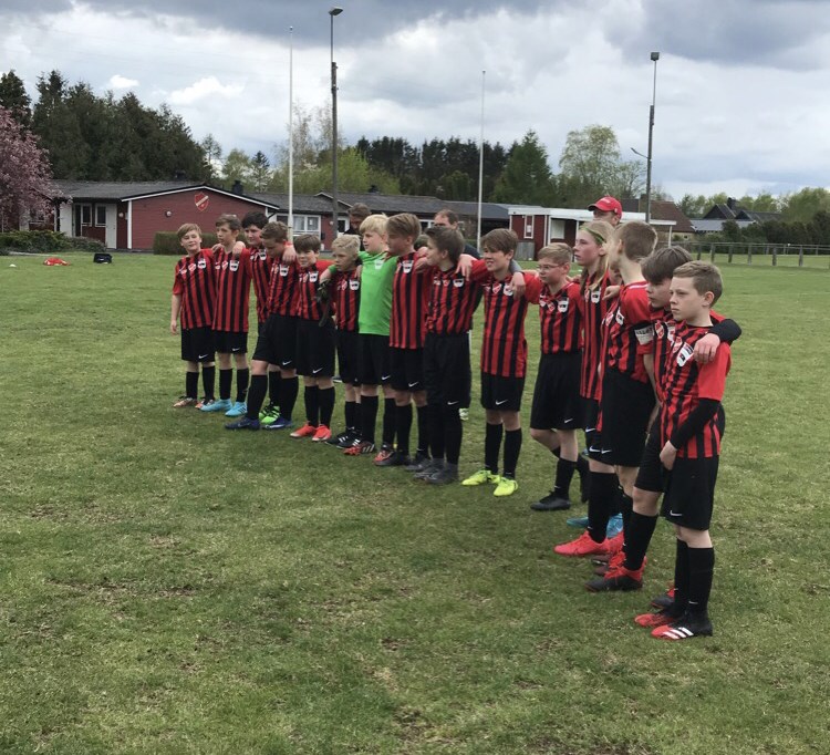 Med strålande vårväder och solen högt på himlen så var det en fröjd att se fram emot match. Första matchen med blåa linjer på 9-mannan plan, som numera är grabbarnas plansize. Dagens kapten att leda laget var Kalle. Domaren blåser igång och vi blir ganska snabbt tillbaka pressade av deras mer eller mindre en och en anfall…vi lyckas trycka fram bollen och blir bryskt ansatta – frispark! Måns lägger fram den till Milo som löpt sig fri…men bollen rinner iväg. De kontrar till anfall och Viktor i målet får visa att han är på hugget – en benparad följd av retur som Viktor behärskat kan plocka in. Vi har nu en period på nästan 5minuter som de fastnat på vår planhalva – vi får jaga mycket boll och det tröttar ut en del… Kalle får bollen längst back och rullar ut till Gadd som passar vidare till Milo som vänder upp men blir hårt ansatt. Måns får bollen hittar ut till Melker S – men stopp…Otto tar tillbaka bollen, passar lugnt hem till Kalle som hittar ut till Måns…de tar bollen och anfaller men Melker S bryter anfallet och passar in till Otto som hittar Milo och tillbaka till Måns – fina försök till uppbyggnad men motståndarna ligger samlat. Gadd får bollen ute vid sidlinjen – driver framåt och spelar upp en längre boll till Milo men den rinner iväg… Ett missförstånd med för korta passningar gör att de kan bryta och sätta dit den. Vi är inte vakna i anfallet efter så en kille kunde dribbla igenom och göra ett nytt mål… Ett hårt skott utifrån i anfallet efter gör att Viktor i målet får göra en kanonräddning! Fabian får en boll på kanten han får jaga ikapp – nickar ner den till sig själv och dribblar av sin försvarare och driver ner mot hörnan och lyckas få till en hörna. Hörnan blir till en farlighet för oss men en täckande spelare lyckas skicka upp bollen som deras anfallare kan förvalta genom en kontring – Viktor i målet räddar ut till hörna! Alla våra spelar gör här ett fantastiskt hem jobb för att hjälpa till! Domaren blåser till halvlek… Vi var alldeles för snälla när vi skulle ”sätta emot” i närkamperna – uteslutande var motståndarna först på alla bollar eller vann tillbaka bollen under 1:a halvlek. Vi började 2:a något bättre än 1:a…men återigen vann de bollen högt och kunde komma till avslut med skott – William nu i målet kunde rädda säkert! Fabian bryter ett uppspel och kan avsluta mot mål med ett skott – MV räddar! Måns väggspelar med Elliot och får upp bollen till strax utanför deras straffområde…ett klungspel med Måns, Svante, Erik och Otto som trycker på för bibehålla bollen….bollen rullar ut Måns som trycker till…Mål!!! Jubel och glädje att få dit bollen! De får frispark strax utanför straffområdet – de sätter dig den snyggt otagbart uppe i krysset! Johannes får en fin boll och jobbar ikapp den, men vid vändning trycks han till…ingen åtgärd. Bollen kommer till Lukas som tar emot och vänder lugnt upp – hittar fram till Svante som tar bollen med sig, tar sig förbi sin motståndare – men blir tilltryckt och bollen rinner över sidlinjen. Otto spelar hem till Kalle som passar vidare ut till Melker S som spelar till Måns och vidare till Erik som blir stoppad…ett fint lir nu då grabbarna försöker hitta runt till varandra men tyvärr är motståndarna fortsatt på hugget och kan stoppa vårt uppspel. Erik gör ett fint långt inkast till Måns som lägger bollen tillrätta och frispelar en djupledsspringande Otto som kallar på boll…blir fri med målvakten och rullar in den säkert – Mål!!! Jubel och glädje! Det sista som händer i 2:a var att de kom till ett skottavslut – men William räddar ut till hörna. Halvlek… Viktor och William delar målvaktsuppdraget i 3:e… Melker S får bollen inne på deras halva och hittar ett instick som friställer Fabian – men skottet går i stolpen! Måns plockar upp bollen på mitten och hittar fram till Fabian som snyggt frispelar Johannes – men de hinner precis före! Kalle har klivit fram från sin backposition och drar på skott en bra utanför – ett bra skott som MV räddar! Viktor får göra en blixtsnabb benparad och räddar till hörna! Nu har vi ryckt upp oss rejält mot de två första halvlekarna – vi sätter till bättre i närkamperna, vi försöker rulla runt mer ända nerifrån i backlinjen och använda mötande mittfältare bättre…ett mycket bra spel av våra grabbar på plan nu! De kommer igenom och drar på ett skott – Viktor räddar, på returen är Kalle först och kan röja bort bollen! Måns går för genombrott och dribblar av 3st(!) på sin färd framåt – spelar en fin djupledspass till Jakob som de precis hinner före på! De trycker iväg ett halvaktigt skott som tyvärr rullar förargligt stolpe in… Anfallet därpå får de iväg ett skott mot mål – William som nu står i buren - räddar ut till hörna! Lukas vänder upp säkert och spelar till Elliot som passar vidare till Jakob som blir stoppad. Melker S rullar ut till Erik som drar upp farten – driver förbi en och passar in till Gadd som drar iväg ett snabbt skott – MV räddar! Lukas offrar sig och täcker ett skott från dem…Otto tar hand om returen rullar ut till Erik som återigen rullar vidare säkert vidare till mötande spelare…men blir stoppad! Elliot erövrar bollen i ett anfallsförsök från dem och spelar till Lukas som blir hårt ansatt… Domaren blåser av matchen! Förutom det underbara vädret och våra mål och stundtals fint passningsspel i omgångar tar vi med oss 3:e halvlek och bygger vidare på detta – vi är tyvärr inte med från start i både första och andra och då hamnar vi efter om motståndarna vill mer som idag. En ny vecka väntar oss med nya träningstillfällen – vi hoppas att samtliga kommer. Dagens härliga gäng i denna match bestod av: Lukas, Elliot, William, Måns, Melker Gadd, Melker S, Otto, Milo, Viktor, 