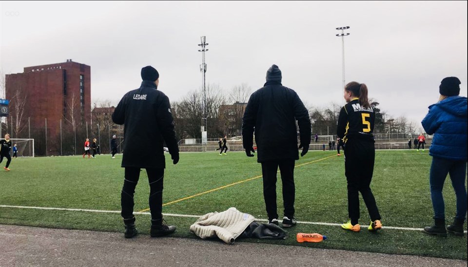 Magiskt! Ni som inte var där missade en magisk tillställning som EIK F-04 bjöd på. Att vi var 12 spelare hade ingen betydelse, EIK var där som ett komplett lag. Anledningarna till att vi var så otroligt bra var att alla presterade över sina egna förväntningar. Att skriva förmåga är fel, vi tränare har sett vad varje spelare kan prestera under träning och även i matcher. Det som gjorde matchen magiskt var att alla presterade sitt bästa indivuduellt men tillsammans med sina lagkamrater även som ett komplett lag, det är magiskt, EIK F-04 var i flow. Till och med våra skadade och sjuka spelare var där för att stötta vid sida om planen. Heja och ta hand om spelare som gjort sig illa, levererade omvårdnad tröst och pepp. Det är lagkänsla! Vi pressade KB och den övervägande tiden så spelades matchen enbart på KB:s planhalva. Vi hade en solid och uppoffrande backlinje och lika så mittfältet och allt genomfördes med kreativitet och trygghet. Vi höll boll och passade, letade öppningar och levererade sköna passningar. Att vi ville ha/äga bollen var den absoluta nyckel. Vi litade på varandras förmågor, med en avbytare så fick alla spela på olika och annorlunda platser, och alla levererade, vi tränare fick se nya färdigheter som vi inte har skådat tidigare, faktiskt överväldiga över bredden vi har i laget och så mycket talang som finns med oss, de är på riktigt fotbollspelare NU. Vi spelar 11- mot 11 och vi har ett komplett lag med världens bästa tjejer. Utöver backar, mittfältare så hade vi otroligt många skott på mål, och vi ledde med 1-0 redan efter första fem minutrarna, allt serverat med kreativitet och beslutsamhet av anfallarna. KB var nog överrumplade över var starka offensiv och vår inställning. Trotts att vi hade press så gick KB igenom och deras ända anfall kröntes med ett mål... rättvist, nej. Vi var alla ställda, särskilt vår lysande målvakt Estrid som gjorde en heroiskt insats genom hela matchen. Vi spelade vårt spel, vilket innebar att vi vann de flesta bollduellerna och spelet i mittfältet. Vi spelade på topp och många av spelarna bytte inte en enda gång på hela matchen, endast skadade bytte. Det var den enda orsaken till att vi inte fixade oavgjort. KB hade ett lag med fem avbytare och trotts vår fantastiska kondition så hittade bollen in bakom vår målvakt igen. Slutresultatet 2-1 till KB är ändå en seger för oss, vi spelade som ett komplett lag vilket är ett fantastiskt styrkebesked inför S:t Eriks cupen som startar om två veckor. Slutligen, vi tackade KB och båda lagen var rörande överens om att det serverades fotbollsglädje på Stadshagen morgonen den 24 mars 2018. Samt att vi gärna möter varandra framöver. Grymt bra jobbat!! F-04 ni är bäst, vilket ni visade varandra. Bilden visar två stolta tränare och Johanna som ska byta och Ellen F som hejar.