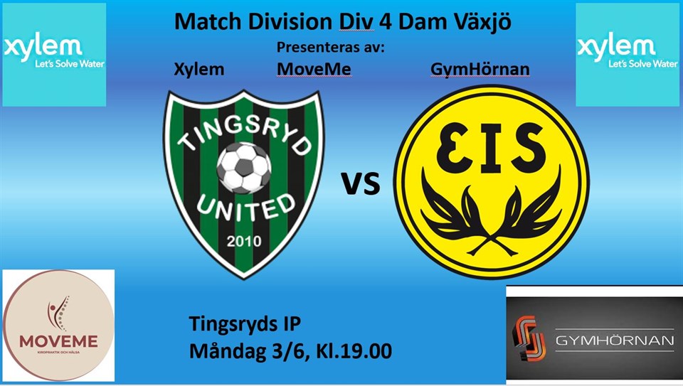 Idag måndag åker vi till Tingsryd för match i div 4 Växjö Dam. Vi kan förvänta oss att det blir en tuff match. Till matchen idag, precis som tidigare matcher, behöver alla ha med sig bra fokus, inställning och vilja. Vi måste direkt och själva få igång vårt driv, engagemang, jobb och slit. Detta för att få igång vårt spel, så ska vi ge hemmalaget en match. Vi måste ta det tuffa jobbet över hela planen, hela vägen och som lag, samt med riktigt bra energi, så ska vi göra en bra insats med bra prestation. Matchen spelas på Tingsryds IP, kl 19.00, måndag den 3 juni. Enligt prognos ska det bli bra fotbollsväder och vi hoppas på en trevlig fotbollsmatch. Vi hoppas många vill komma och stötta Emmaboda kommuns bästa lag. Vi kommer att uppdatera via appen Min Fotboll! Vi kommer att livesända matchen på Min Fotboll! Aktuell tabell: Denna Vi kan, Vi vill, Vi vågar, Vi gör. Emmaboda kommuns bästa lag, Emmaboda IS Dam! Truppen är: 37. Matilda Fransson (mv) 3. Gerda Jonsson 4. Agnes Elgborn 6. Nora Strand 11. Wilma Eriksson 16. Majken Simonsson 18. Emelié Hyberneth 19. Marlene Lennartsson 23. Amelia Malmquist 25. Molly Sandström 28. Maja Edberg 29. Tilde Elgborn 31. Maya Sandqvist 32. Wilma Fyhr 33. Louise Lorentzon
