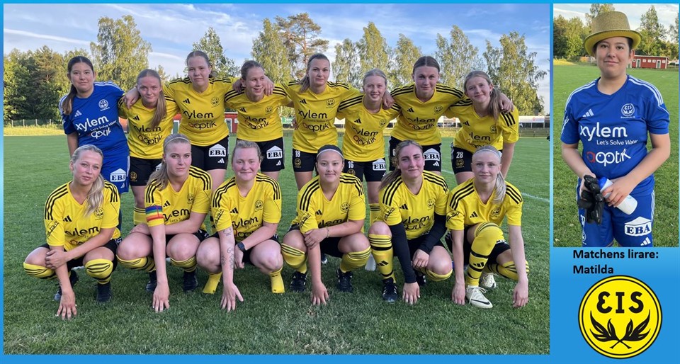 Förra söndagen åkte vi till Dänningelanda för bortamatch i div 3 sv Dam och match mot Vederslöv-Dänningelanda. Vi tar tag i match och spel direkt. Det fortsätter under hela matchen och motståndarna kommer inte ur vårt grepp under hela matchen. Vi gör 1 mål under första halvlek och 3 i andra och matchen slutar med 4-0 vinst för EIS. Vi hade även en straff en kvart in i andra, efter att EmelieJ, blivit fälld av 2 motståndare. Straffen gick precis utanför målvaktens ena stolpe. En stark och stabil match av Emmaboda IS Dam. Det var jobb, rörelse och bra spel. Många fina kombinationer. Defensiven var riktigt bra då vi knappt lät motståndarna vara på vår planhalva. Allt detta tar vi med oss framåt. Bra jobbat och spelat Emmaboda IS Dam. Matchens Lirare blev: Sandra. Vi kan, Vi vill, Vi vågar, Vi gör. Emmaboda kommuns bästa lag, Emmaboda IS Dam! Målen: 0-1 Miranda, frispark, ute vid sidan av målet och in i burgaveln. 0-2 Sandra blir fri och lägger lugnt in bollen vid sidan efter förarbete från Ronja. 0-3 Alma får bollen vid straffpunkten och lägger lugnt in bollen vid sidan efter passning från Vera. 0-4 Majken krigar in bollen på bortre efter inlägg av Ellinor.