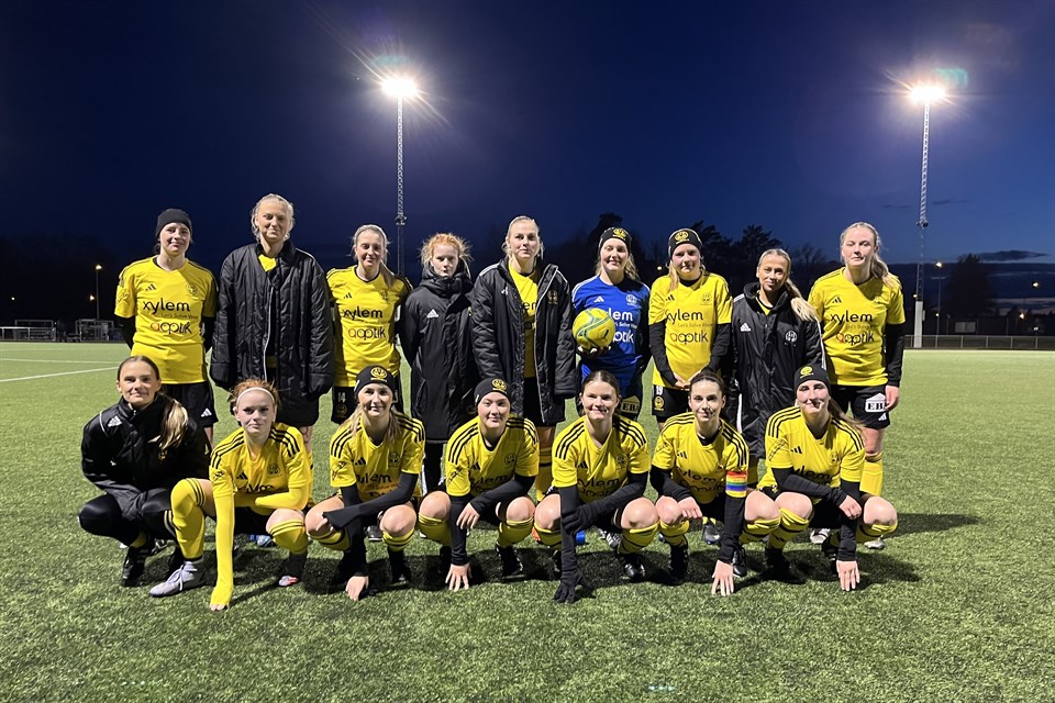 Äntligen var det dags för seriepremiär div 3 efter den härliga försäsongsträningen. Dagens väder bjöd på häftiga vindbyar som, när det friskade i, gjorde att det gällde att kommunicera högt för att höras. Vi var ordentligt laddade och bjöd upp till riktigt bra spel direkt. Det tog inte 1 minut så stod det 1-0. Inom 10 minuter hade vi gjort 3-0 och i halvtid var det 5-0. 5-0-målet var en delikatess för fotbollsälskare med mycket kortpassnings-/ direkt-/väggspel och snyggt inplacerad vid stolpen. Det var en riktig överkörning i första och detta efter en urladdning med bra spel, varierade avslut och stabil defensiv. Vi slarvade riktigt 1 gång i defensiven och bjöd Ronneby på ett farligt läge som Elvira fick rädda med en benparad. I andra är vi fortfarande överlägsna i spelet, dock inte lika vassa i avsluten. Kombinationen att vi inte var lika heta och att Ronneby stärkte sin defensiv, gjorde att målfabrikationen blev lite mindre. Vi gör 2 mål till och mot slutet får en motståndare gå lite med bollen och får till ett bra långskott som gör att slutresultatet skrivs till 7-1. Vi gör en riktigt bra premiärmatch där vi är ordentligt taggade. Suveränt bra, rörligt och varierat anfallsspel. Varierade avslut och försök. (Enda man kan klaga på är att vi inte gjorde fler mål och att vi släpper in ett…) Ett riktigt bra och smart presspel som gjorde att det knappt blev några riktiga anfall emot oss. De gånger det blev, löste vår defensiv och målvakt detta bra. Största delen att vi kan spela ut på detta sätt är att vi tar jobbet, hjälper varandra och har bra kommunikation. Allt detta tar vi med oss framåt och spetsar lite till. Bra jobbat och spelat alla, Emmaboda IS Dam. Riktigt go och överlägsen premiärvinst. Vi kan, Vi vill, Vi vågar, Vi gör. Emmaboda kommuns bästa lag, Emmaboda IS Dam! Målen: 1-0 Ellinor lägger lugnt in bollen efter förarbete/passning från Ronja. 2-0 Ronja tar bollen vid mittplan, driver förbi motståndare, skapar ett friläge och gör behärskat mål. 3-0 Moa trycker in bollen vid första stolpen efter jobb och glidtacklingsinlägg av Wilma. 4-0 Ronja placerar lugnt in bollen efter bra öppnande pass av Miranda. 5-0 Ronja, efter ordentligt kortpassningsspel lägger Alma fram bollen och Ronja placerar in bollen i bortre. 6-0 Moa rakar in bollen vid bortre stolpen efter perfekt förarbete och passning av Sandra. 7-0 Alma trycker in bollen via ribban i nättaket efter målvaktsretur som blir efter bra press av Sandra. 7-1 Ronneby.