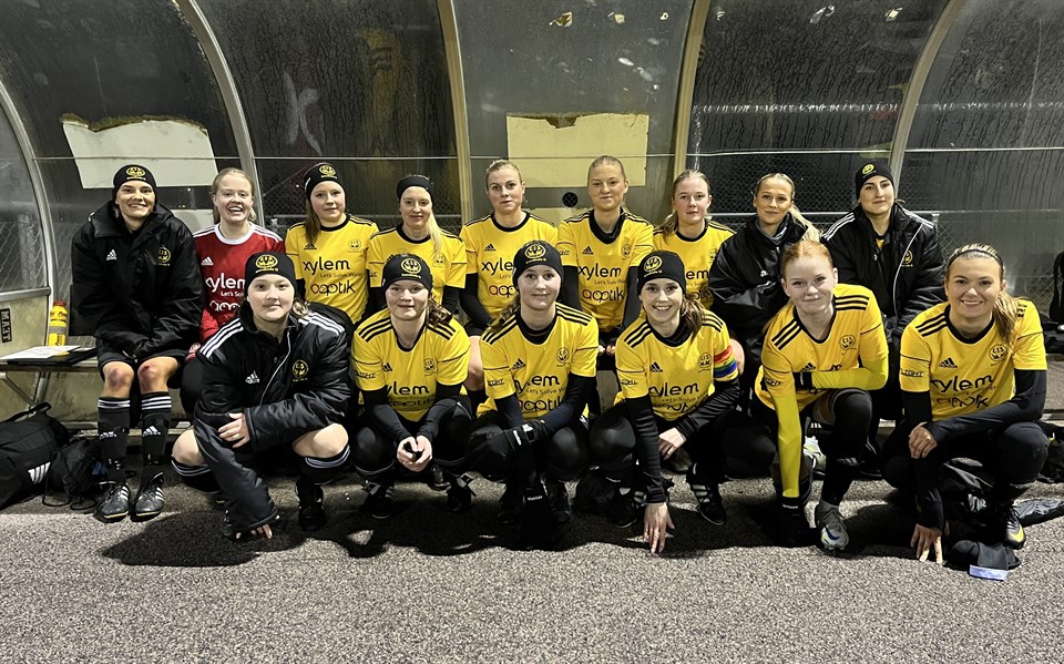 I fredags hade vi andra tävlingsmatchen för säsongen med Toyota Cup. Vi åkte till Lindsdal för möte med Kalmar AIK. Började mindre bra då det brukar finnas kaffe…….. Matchen däremot började vi riktigt bra. Vi tog tag i taktpinnen direkt och släppte inte det taget någon gång. Redan i första minuten får Moa bollen utanför straffområdet, går förbi en och skjuter bra. Kalmars målvakt gör en bra räddning till en resultatlös hörna. Efter drygt 10 spelade får Ellinor bollen via Emelie H, precis inne i straffområdet och drar till med vänstern, via målvaktsfingrar, in i burgaveln, 0-1. Knappa 10 minuter senare stressar vi KAIK ordentligt, Ellinor får tag i bollen och trycker otagbart in 0-2. Efter knappa 10 till har vi ett kanonspel, där bollen går på 1-2, där sista passen från Amelia gör att Moa kan klippa till perfekt och 0-3 som också är halvtidsresultat. Bra halvlek med bra spel och där vi inte tillåter KAIK något. Vi fortsätter andra bra och skapar många bra lägen. Det tog dock dryga 20 minuter till vi gör 0-4 på straff. Ronja blir överkörd och det var ingen tvekan från domarna. Det konstiga var att KAIK-spelaren klarade sig utan varning. Förmodligen för att hon redan fått en….. Ellinor förvaltade straffen säkert. Bara en kort stund efter blir Ronja fullständigt överkörd igen av samma spelare. Nu kunde inte ens domarna blunda och det blev rött för KAIK-spelaren som inte hade sin bästa dag på planen. Borde kommit tidigare då vi nu fick en skadad spelare, vilket domarna uttryckte efter matchen. Straffen av Ellinor lyckades målvakten rädda till retur och den tryckte Ellinor in, 0-5. Knappa 15 kvar stressar vi bra, vinner boll, där Matilda hittar Emelie H som trycker till perfekt och 0-6. Strax efter har vi ett bra anfall där bollen går på ett. Moa blir friställd av sista passen från Matilda och lägger först bollen på målvakten och lägger sen in returen till 0-7 som blir slutresultat. En riktigt bra och stabil andra tävlings-match. Vi spelar bra, rör oss och hjälper varandra. Skapar riktigt bra och varierade lägen och siffrorna är i underkant. Stabil defensiv som gör att det blir enkelt. Detta tar vi med oss framåt till nästa gruppmatch i Toyota-Cup, Smedby/Trekanten hemma, söndag 24 mars. Bra jobbat och spelat alla, Emmaboda IS Dam. Vi kan, Vi vill, Vi vågar, Vi gör. Emmaboda kommuns bästa lag, Emmaboda IS Dam!