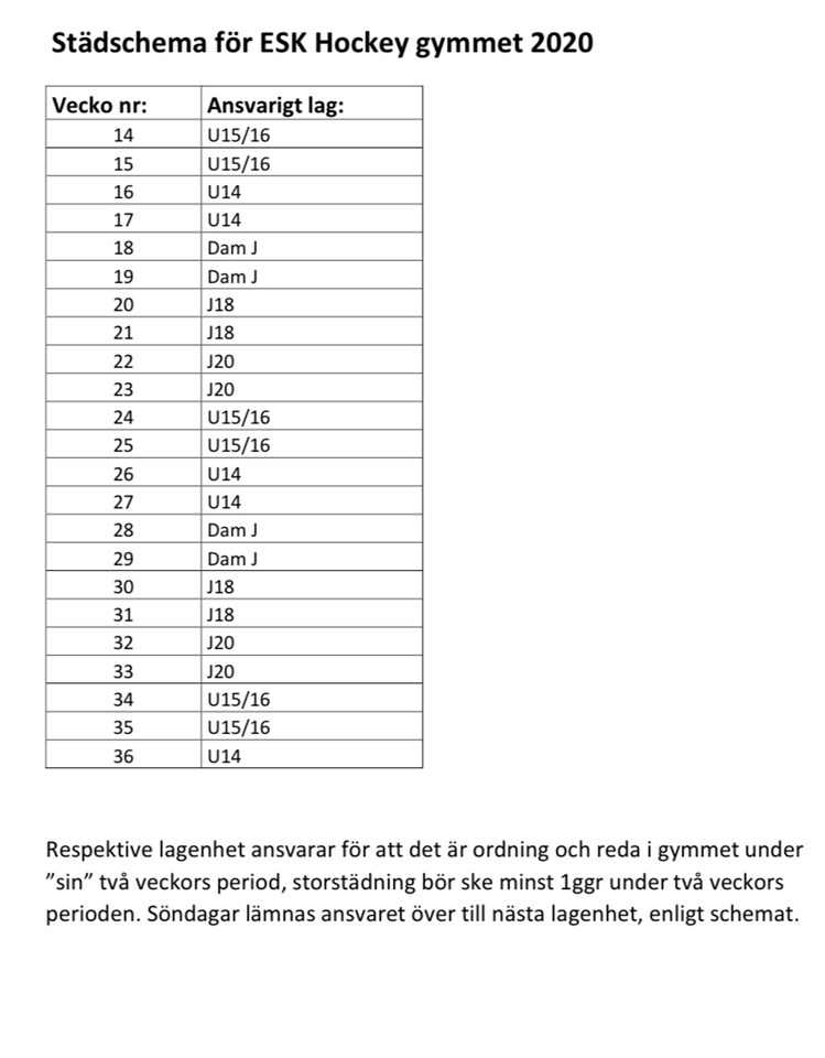 I veckan var vi ett par tappra ledare som finstädade gymmet nere i Sandbrohallen. Framgent skall det städas av lagenheterna som nyttjar gymmet. Bifogar finns städsschema, kommer även ut som kallelse så att alla (spelare) kan hjälpa till, när vi skall hålla rent. Resp lagenhet ansvarar för sin period och gymmet skall ”lämnas över” till nästa lagenhet i det skick som bilderna visar. Juniorlag Damer 4 apr 2020 0kommentarer