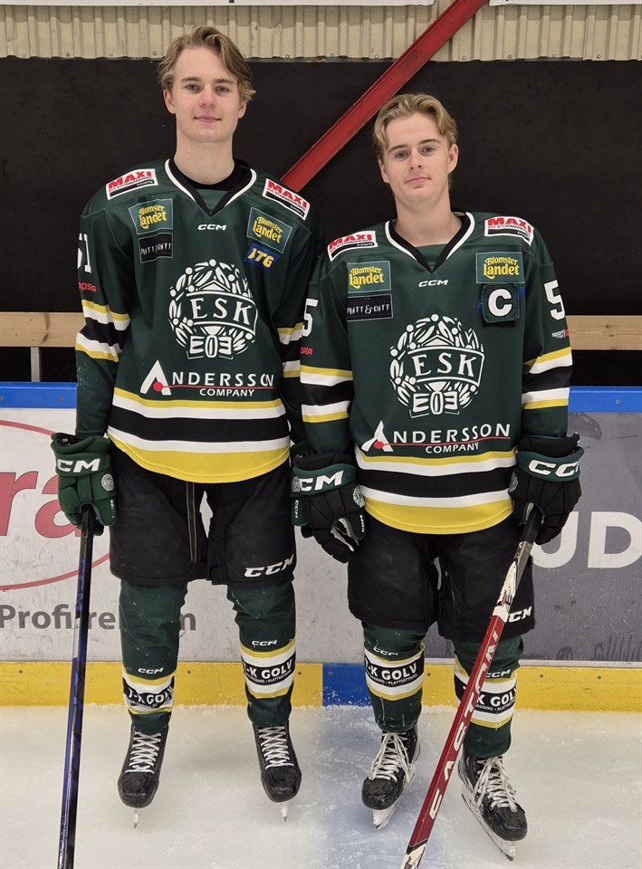 Tredje presentationen. Två av våra backar. Till vänster Joel Agné och till höger Alexander Malm. Joel (2006) kommer kommer från Enköping SK egna juniororganisation sedan säsongen 22/23 och gör sin andra sesång i ESK J20. Joel har Västerås IK som moderklubb. Alex (2006) kommer från Enköping SK organisation sedan hockeyskolan och gör sin tredje säsong i ESK J20. Alex har varit ESK trogen sedan hockeyskola, men fick möjligheten att representera SIF-laget i TV-pucken 21-22. VÄLKOMNA TILLBAKA! J20 4 okt 2025 0kommentarer