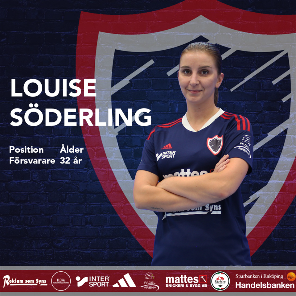 Hur kommer det sig att du valde att börja spela i Enköping Uniteds nystartade damlag? - Ett roligt gäng spelare och ledare, och bra träningar gjorde att jag valde United. Vad är det roligaste med att spela i Enköping United? - Peppen vi har på matcherna där alla verkligen krigar för varandra. Hur är känslan så här efter snart en hel säsong med nystartade damlaget? - Att vi spelat ihop oss riktigt bra, mer sammansvetsade än väntat! Det känns lovande. Vad är dina styrkor på planen för dem som inte känner igen dig sedan tidigare? - Bra på att läsa spelet och positionssäker i defensiven. Vad är målsättningen inför nästa säsong? - Ha en minst lika stort trupp som nu och bättre placering i serien än i år. Fem snabba Favoritspelare? Pass Favoritlag? Arsenal Favoritmat? Allt med skaldjur Favoritlåt? Typ alla av Thomas Stenström Favoritfilm? Harry Potter filmerna Fakta Namn: Louise Söderling Född: 20 februrari 1991 Position: Mittback Tidigare klubbar: Fanna BK, Åsunda IF och Härnevi BK A-lag Damer 19 sep 2023 0kommentarer