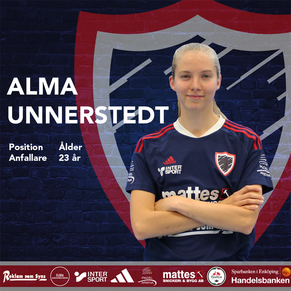 Hur kommer det sig att du valde att börja spela i Enköping Uniteds nystartade damlag? - Valde United för tänkte det skulle vara roligt att testa spela med ett nystartat lag och vara med på deras resa. Vad är det roligaste med att spela i Enköping United? - Roligast med att spela i United är sammanhållningen och att vi har roligt tillsammans. Hur är känslan så här efter snart en hel säsong med nystartade damlaget? - Gick med efter halva säsongen så har bara spelat tre matcher än så länge men känslan är väldigt bra! Jag trivs bra och det känns som vi jobbar tillsammans som ett lag. Vad är dina styrkor på planen för dem som inte känner igen dig sedan tidigare? - Styrkor är kanske snabbhet och att jag inte ger upp. Vad är målsättningen inför nästa säsong? - Målsättningen inför nästa säsong är att kanske vara med och kriga om serieseger. Fem snabba Favoritspelare? Lotta Schelin Favoritlag? FC Barcelona Favoritmat? Lasagne Favoritlåt? Någon låt med Benjamin Ingrosso Favoritfilm? The Greatest showman Fakta Namn: Alma Unnerstedt Född: 14 augusti 2000 Position: Anfallare Tidigare klubbar: Enköpings SK A-lag Damer 22 sep 2023 0kommentarer