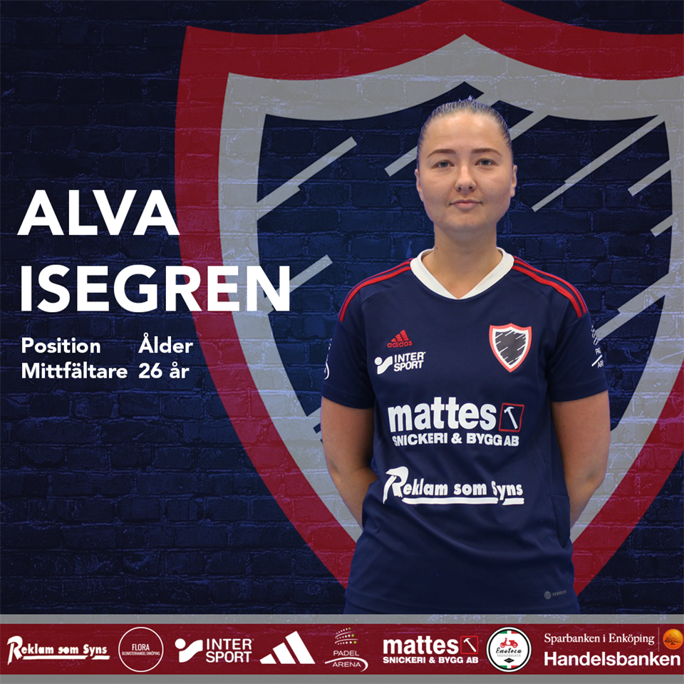 Hur kommer det sig att du valde att börja spela i Enköping Uniteds nystartade damlag? - Många av tjejkompisarna pratade om att provspela, så jag hakade på! Vad är det roligaste med att spela i Enköping United? - Stämningen mellan alla i laget skulle jag säga, fantastisk. Hur är känslan så här efter snart en hel säsong med nystartade damlaget? - Grym! Tycker vi har gjort det bra för att vara vår allra första säsong tillsammans, och lyckats spela ihop oss snabbt. Vad är dina styrkor på planen för dem som inte känner igen dig sedan tidigare? - Jag skulle säga att mina styrkor är att jag spelar rätt fysiskt och sen att jag hörs på planen, oavsett om du vill eller inte. Vad är målsättningen inför nästa säsong? - En första-andra plats till tycker jag låter som ett rimligt mål! Fem snabba Favoritspelare? Elin Rubensson. Favoritlag? Enköping United. Favoritmat? Pasta i alla dess former. Favoritlåt? Ojojoj, finns alldeles för många bra. Favoritfilm? Harry Potter-filmerna, men måste jag välja en av alla är det flammande bägaren. Fakta Namn: Alva Isegren Född: 10 februari 1997 Position: Defensiv mittfältare Tidigare klubbar: ESK