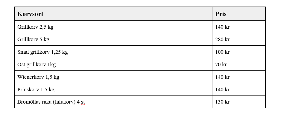 • Beställning av korv!