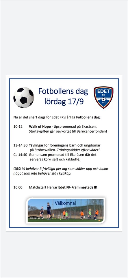 Här kommer lite info angående fotbollens dag. Vi är väldigt tacksamma om några vill hjälpa till med bakningen. Mvh Ledarna. P 13 7 sep 2022 0kommentarer