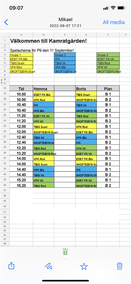 Här kommer spelschemat. Vi kommer med mer information väl vid samlingen i morgon. Ha en fin lördag Mvh Ledarna P 13 10 sep 2022 6kommentarer