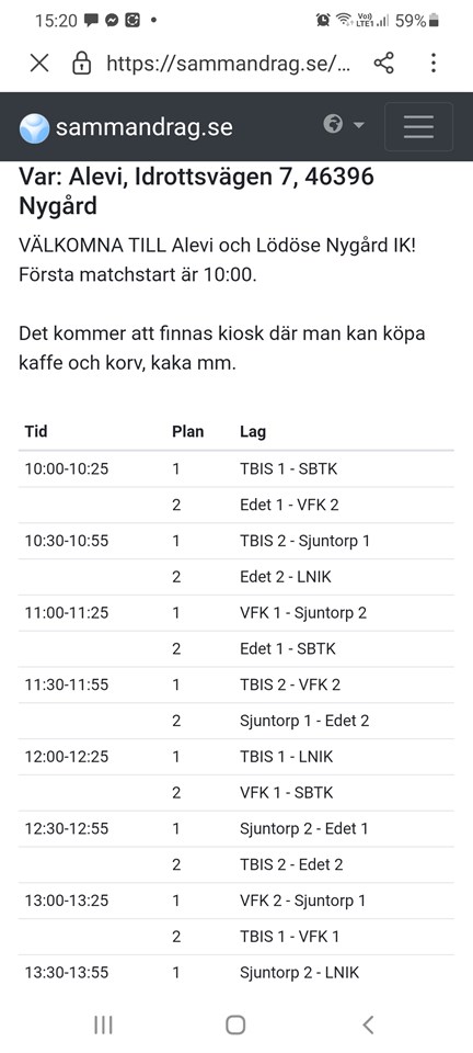 Hej! Jag bifogar en bild på spelschemat till sammandraget för barn som blivit kallade. Det blir en lång dag igen så se gärna till att barnen har vattenflaska och ngt att äta, kiosk ska finnas. Benskydd är ett måste och för er som inte betalt medlemsavgift kan göra det på edetfk.se. Klicka på fliken Mer och sedan bli medlem, det är viktigt att bli det för att diverse försäkringar ska gälla. Samling är 08.45 på strömsvallen där vi byter om för att sedan åka till Skepplanda runt 09.00. Är det ngn som behöver skjuts så skriv gärna det och även om man har extra plats i bilen då vi i nuläget har 3 spelare som behöver ngn att åka med! Mvh Ledarna P 13 10 sep 2021 7kommentarer