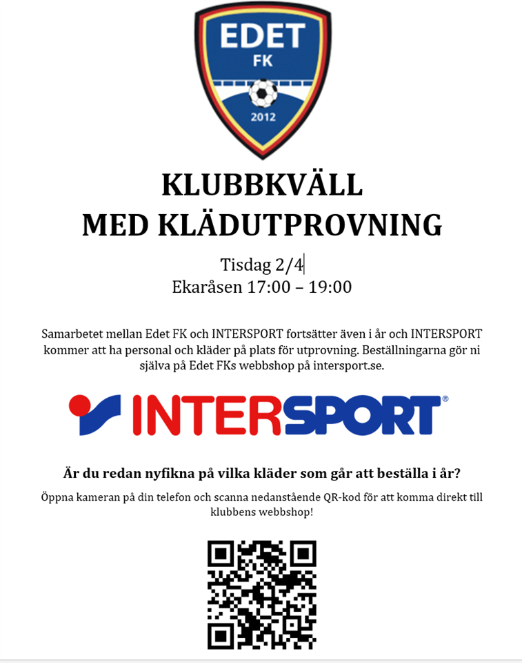 Klubbkväll med klädutprovning den 2/4 kl.17-19 på Ekaråsen.