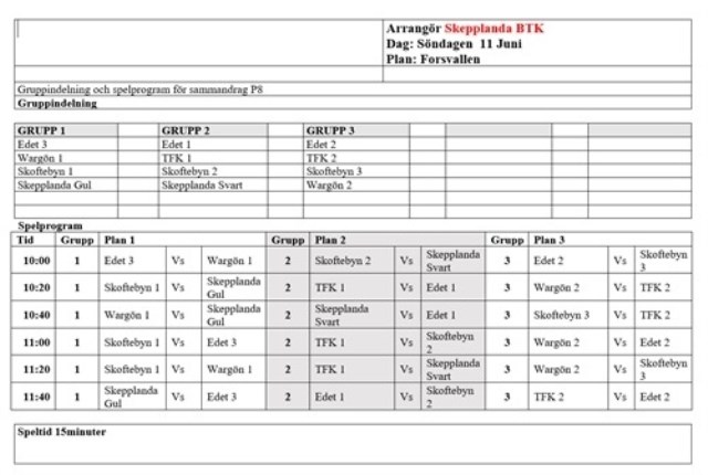 Vi samlas för ombyte och genomgång på Ekaråsen kl.8:45. Sen åker vi gemensamt ner och har en trevlig förm. på Forsvallen i Skepplanda. Följade spelare är kallade. Andrès Arvid Benjamin Eddie Elias E Elias M Filip H Gustav Hugo A Hugo N Ivan Jackie Kian Lemmy Liam Lukas Malek Maximilian Neo Oliver Philip W Rocky Vincas Ev. kommer några 2010:or att ansluta. Vi kommer även att ha ett sammandrag helgen efter den 18/6 i Trollhättan. Är det någon som vet med sig att de inte kan delta i dessa så hör av er så fort som möjligt. Mvh. JA, MA och DW P 09/10 4 jun 2017 1kommentar