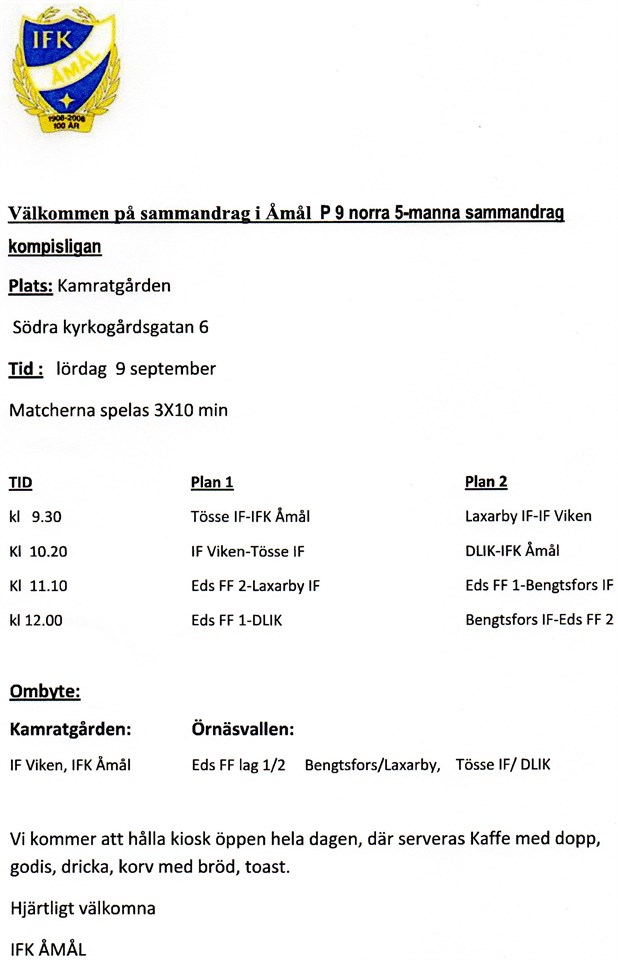 Kamratgården Åmål ombyte vid Örnäsvallen P 16-17 år 6 sep 2017 0kommentarer