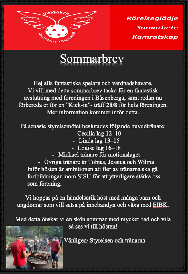 Tack alla för en trevlig avslutning i Båsenberga sist. Här kommer ett litet sommarbrev med lite information och ett "Save the date" till augusti. Vänligen // Styrelsen genom Jessica Ohlsson Bergström Ekbackskyrkans IBK 15 jun 2023 0kommentarer