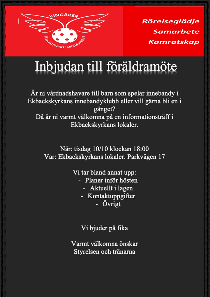 Hej Nedan bifogar jag en inbjudan till föräldramöte som ni kan boka in i kalendrarna redan nu. Vänligen /Jessica genom styrelsen Ekbackskyrkans IBK 19 aug 2023 0kommentarer
