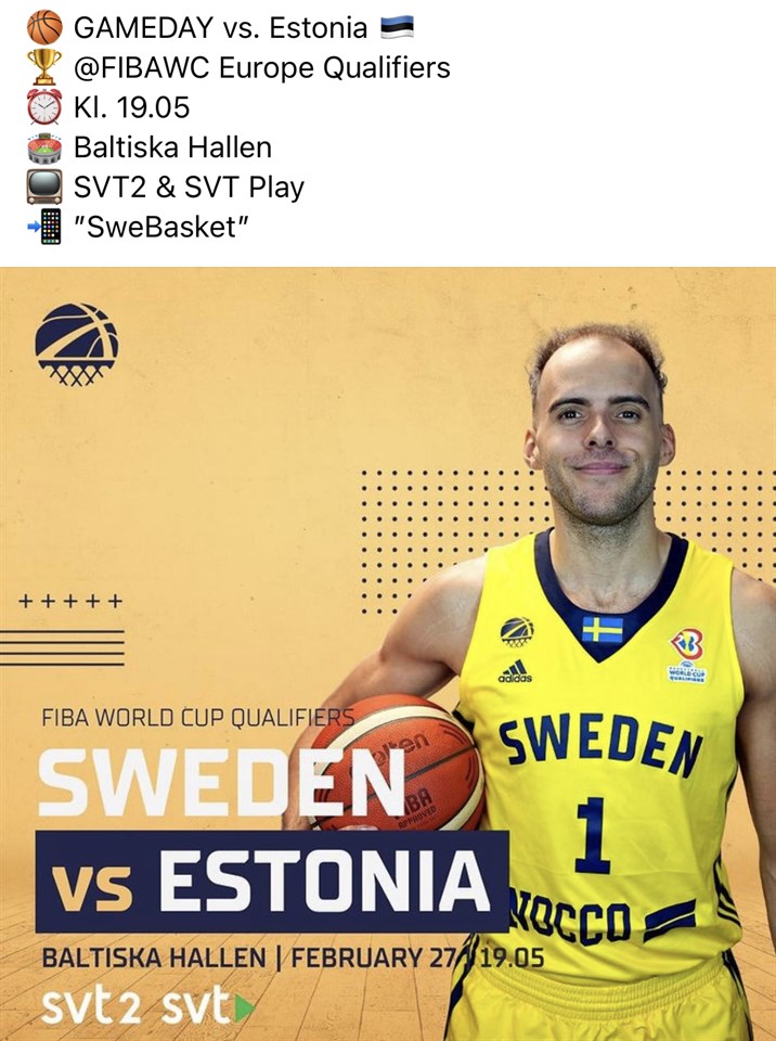 Ikväll 19:05 kan ni som vill skåda Sverige i en VM kvalsmatch på SVT. Heja Sverige 🏀👍 Basket P/F 10-12 27 feb 2023 0kommentarer