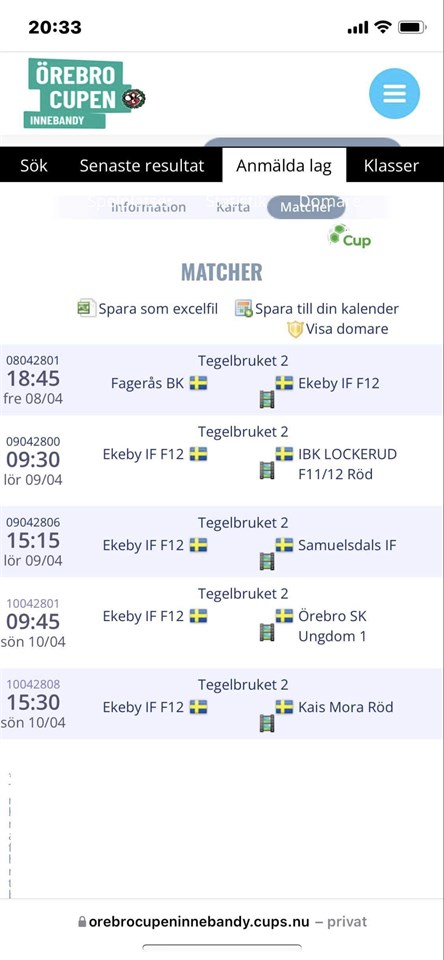 Hej! Samling vid Lidl kl 17:45 imorgon fredag. Båda tröjorna med. På lördag samlas vi 8:30 vid Lidl inför första matchen. Inför övriga matcher ses vi inne på Tegelbruket 30 minuter före matchstart, båda tröjorna med till alla matcher. Det här ska bli kul!!! // Ledarna
