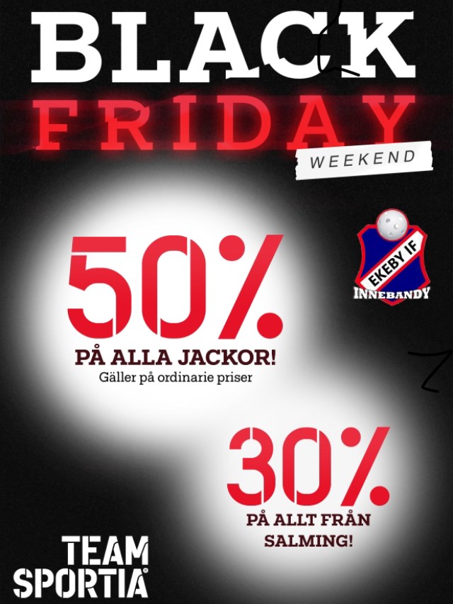 Missa inte BLACK FRIDAY, Team Sportia har ett grymt bra erbjudande för alla Ekeby IF medlemmar. (Gäller dig som har barn i Ekeby IF) Låt bollen rulla.,.,.