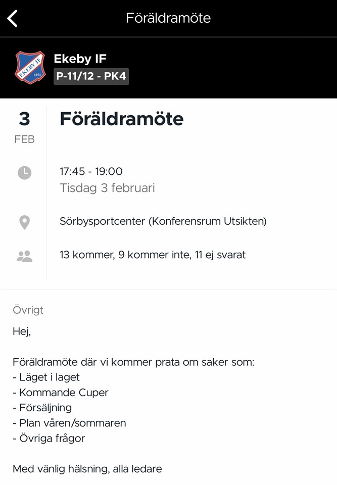 Klicka på bekräftelselänken i det mejl vi skickat dig för att börja ta emot uppdateringar från Ekeby IF P-11/12 - PK4.