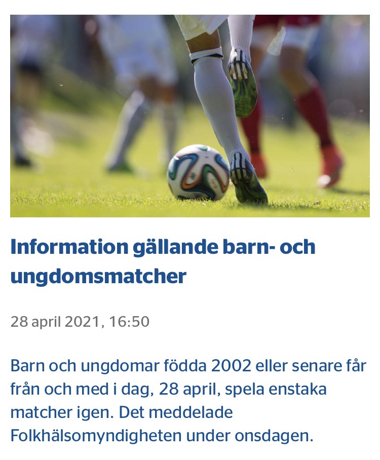 Folkhälsomyndigheten har tagit beslut om att ungdomsidrotten får börja spela matcher igen!!! Smålands FF planerar uppstart av seriespel runt 22/5. Träningsmatcher kan spelas from 3/5. Kul!!!! Viktigt är dock att vi fortsätter att följa covid -19 riktlinjer!!! J18 29 apr 2021 1kommentar