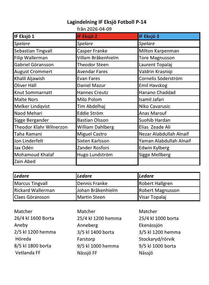 Fyll i din e-postadress för gratis uppdateringar om IF Eksjö Fotboll P-14