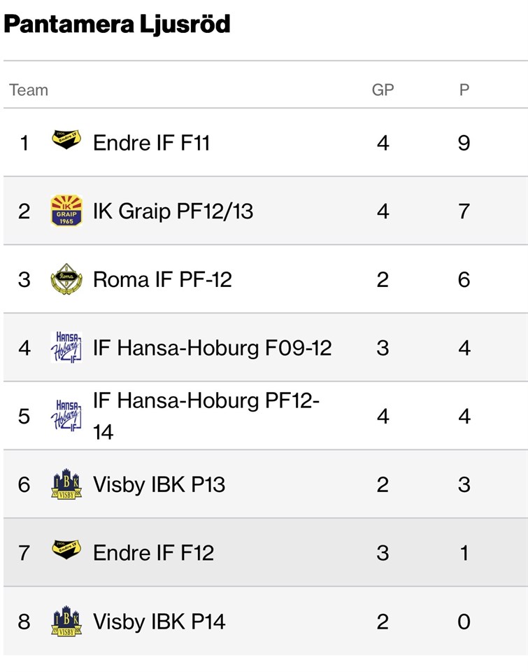 | 8. | (100) | Visby Innebandyklubb PF-18 |