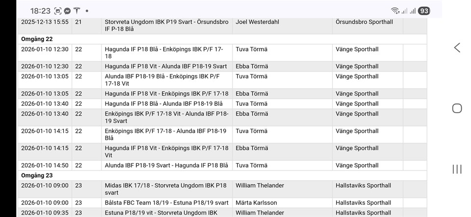 | Alunda IBF P18-19 Blå (borta) | 10 jan, 13:05 |