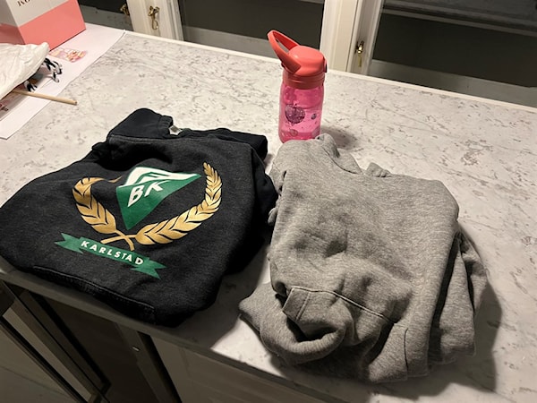 Efter gårdagens träning i gymnastiksalen var två tröjor och vattenflaska kvarglömda, se bild. Någon som känner igen?