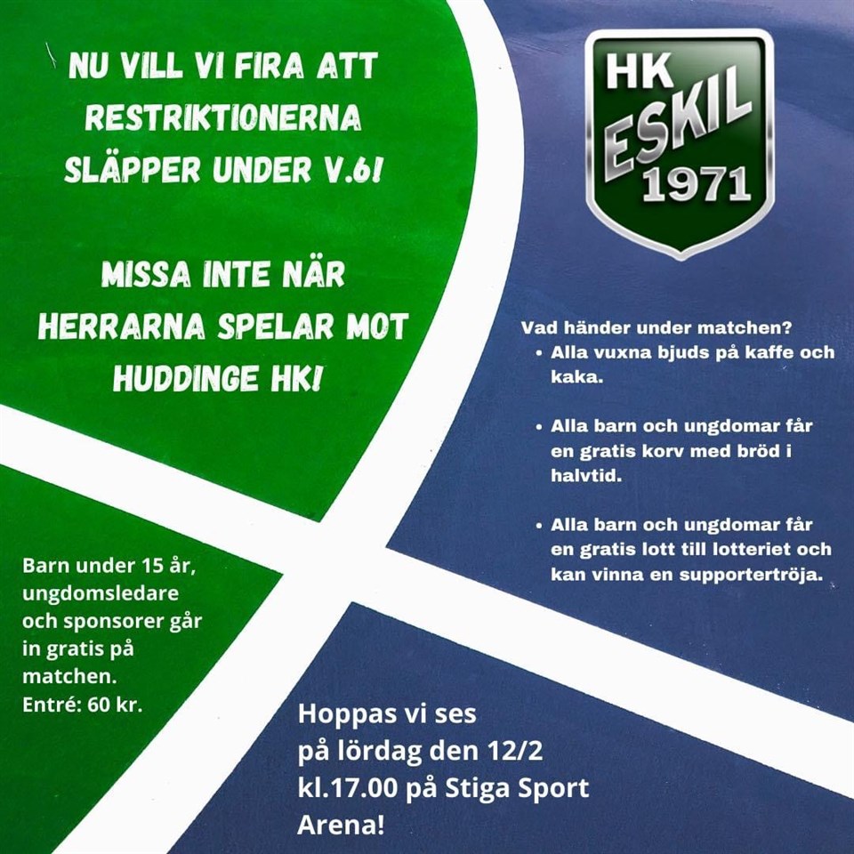Klicka på bekräftelselänken i det mejl vi skickat dig för att börja ta emot uppdateringar från HK Eskil P2015.
