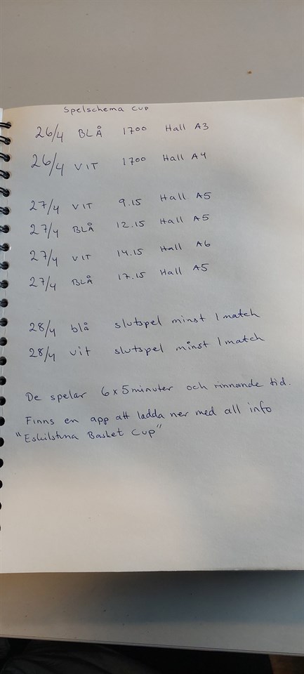 Nu är cupen snart här! Hoppas alla spelare är taggade och kommer till varje match med positivt energi och full fokus :) Vi samlas inför varje match precis innanför dörrarna vid huvudentrén till Volvo CE Arena eftersom alla våra matcher spelas i A-hallen. Inför första matchen på fredagen samlas vi 1 timme innan, dvs kl 16.00, så vi hinner lämna ut matchställ och byta om innan. Till resterande matcher vill vi att spelarna kommer ombytta redan till samlingen som är 45 minuter innan matchstart. Det är extremt viktigt man är i tid till samlingen för vi kommer behöva prata taktik och värma upp inför varje match. Blir man sen till samlingen och missar detta kan vi inte garantera att vi låter spelaren spela den matchen. Alla matcher är inlagda som aktiviteter i kalendern och där finns också tid för samling angiven! Slutspelsmatcherna på söndagen lägger vi in så fort det står klart hur det gått för våra lag i gruppspelet för först då vet vi vilken tid vi ska spela slutspelsmatcherna. Ett tips är också att skaffa appen "Eskilstuna Basket Cup" får där finns all information om cupen, inklusive spelschema. Hoppas vi ska få en riktigt kul cup tillsammans och att vi plockar med oss ett par vinster dessutom! ❤️🏀 P12 20 apr 2024 0kommentarer