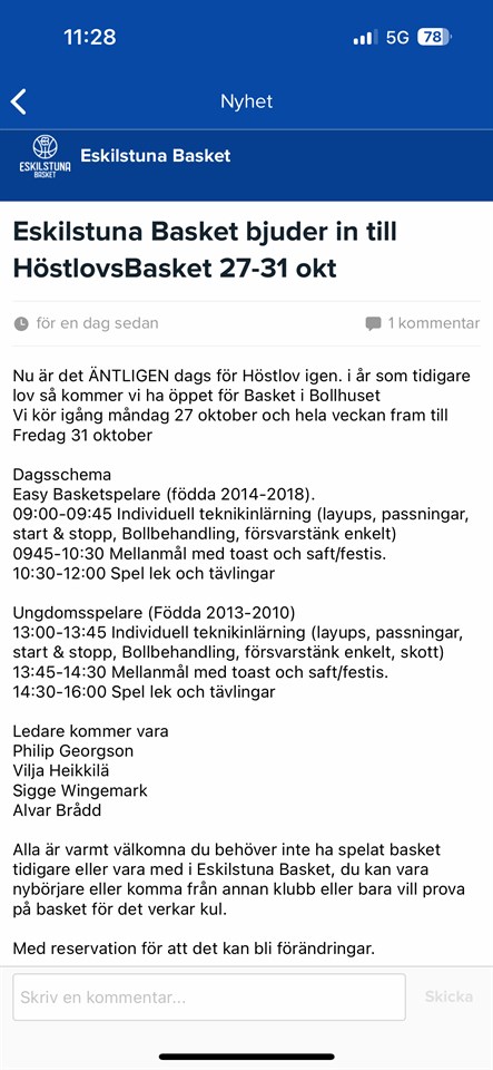 Klicka på bekräftelselänken i det mejl vi skickat dig för att börja ta emot uppdateringar från Eskilstuna Basket P13.