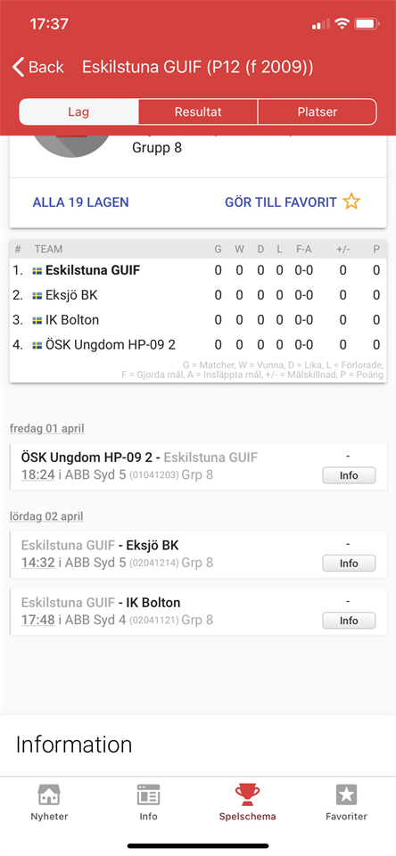 Hej, lägger upp info kring hur våren kommer att se ut. Börjar nu närma sig slutet av denna säsong. Janne har idag skickat ut kallelse för de matcher och cuper som är planerade. 27/3: sista seriesammandraget, matcher mot Irsta och Eskil. 09:00: Irsta och 15:00 Eskil. vi är ju anordnade i Ekängshallen så då är det även en match mellan Irsta och Eskil som behöver planeras. 1/4-3/4: Irsta Blixten, Fredag: 18:24 ÖSK-GUIF, Lördag: 14:32 GUIF-Eksjö, 17:48 GUIF- IK Bolton. sedan beroende på placering match under söndag oxå 28/5-29/5: Järnvägen Cup.(ute) Vi har träningar planerade Maj ut(fram till Järnvägen). Planen är även 1-2 sociala träffar med laget inc Avslutning. +ev gå tillsammans på A-lags matcher som passar. Tänker att det finns ett sug från Föräldrarna till Revanch för förlusten av förra årets föräldrarmatch. Fick även en fråga från Oscar i Lördags ang Åhus cup men skriver mer ang detta i ett separat inlägg. någon annan fråga/fundering? mvh ledarna