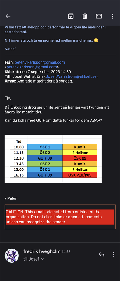 Hej alla, laget tuffar nu på med träningarna tillsammans med P10. Kul att se så många av killarna på träning och tillsammans med P10 blir vi en större träningsgrupp med större urval för övningar som går att göra. Känns som att killarna i de bägge lagen har hittat varandra på en bra nivå och upplever även att de tycker det är rolig med nya röster på träningen. Vi har nu tillsammans med p10 en otroligt kompentent ledargrupp. Som ni märker börjar nu även matcherna komma med två matchtillfällen, onsdag och söndag nästa vecka, Örebro cup om 2v och sedan starten på seriespelet veckan efter Örebro. Våra seriematcher är nu inlagda i kallendern så ta gärna en titt på dagar och tider. Ett önskemål: Svara på kallelser till matcher och cup så snart ni kan, vi kommer att sätta sista datum för svar på kallelser till matcher och har man inte svarat innan svarsstiden går ut så räknas det som ett Nej. vilket innebär att andra spelare kommer att få frågan. Jag hade flera tillfällen föra året där jag raggade spelare dagen före och tom samma dag som match, vilket vi vill försöka undvika i år. Vi har även möjlighet tack vare sammarbete med p10 att enklare få fler spelare vid behov. Ett samarbete som går åt båda hållen. trevlig helg