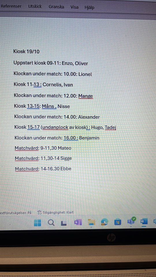 Efter förra helgen fick vi in 3400 i kiosken. Svårt att räkna av inköp då vi handlat endel inför hela säsongen. Men ett väldigt bra klirr i kassan.