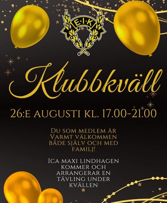 Tisdagen den 26:e augusti är det dags för vår årliga klubbkväll! Det blir en kväll i gemenskap med lagkamrater, ledare, föräldrar och syskon. I år kommer även en av våra sponsorer Ica Maxi att vara med under kvällen och arrangera en tävling. Spelarna samlas som vanligt vid 16.30 och vi kommer då dela in oss i lag för att spela en liten internturnering tillsammans med andra lag i klubben. Kallelse har redan skickats ut och aktiviteten ligger i era kalendrar. Kvällen bjuder på matchspel, café, tänd grill med massa gott och försäljning av merchandise. Så ta med familjen, heja fram lagen och ha en trevlig kväll på fina Essinge IP! Varmt välkomna!
