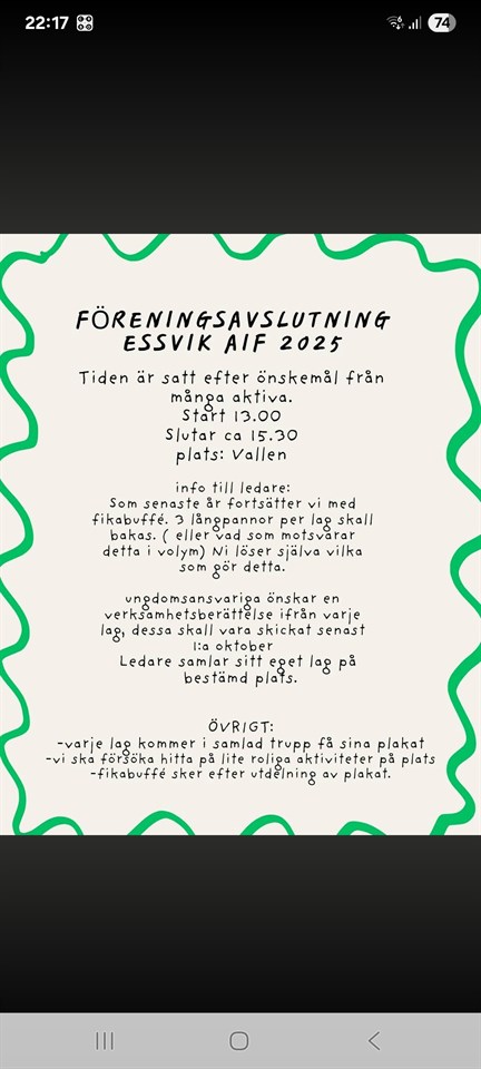 Klicka på bekräftelselänken i det mejl vi skickat dig för att börja ta emot uppdateringar från Essviks AIF P2014.