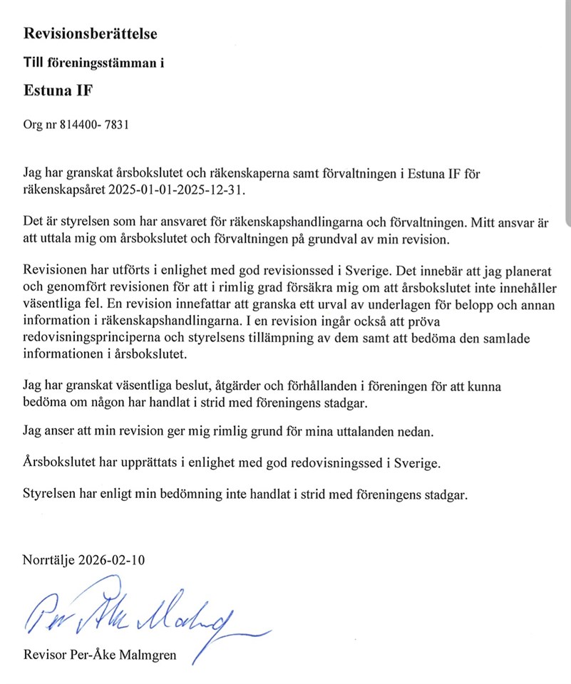 Nu finns revisionsberättelsen för 2025 uppladdad under dokument.