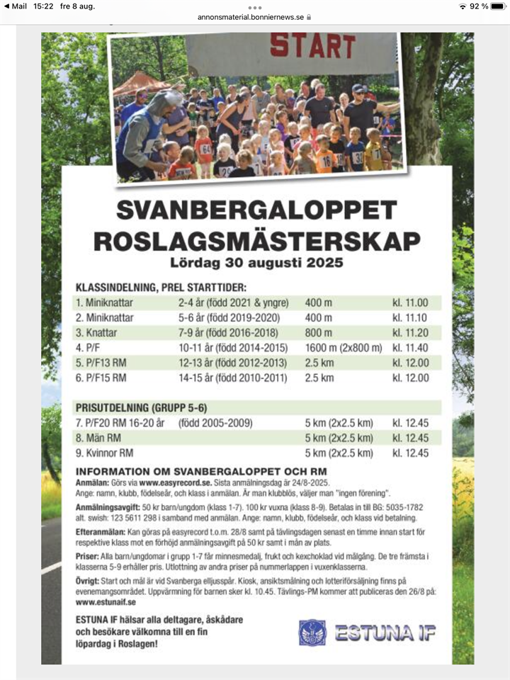 Fyll i din e-postadress för gratis uppdateringar om Estuna IF Friidrottslek 2017/2018