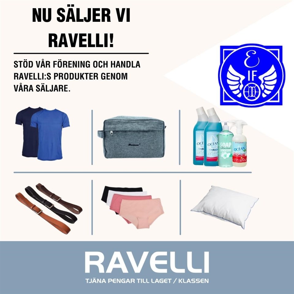 Hej Vi i Estuna IF friidrott/innebandy kommer dra igång en försäljningsrunda på 5 veckor med produkter från Ravelli AB. Det är produkter inom hemtextil, accessoarer, funktionskläder/underkläder. Vi kommer att göra iordning informationslappar och kataloger för försäljning och börja dela ut v.8 på respektive träning. Det finns inget krav från klubben att ni måste sälja något visst antal produkter. Alla gör så gott de kan utifrån sin egen förmåga. All förtjänst från försäljning går in på respektive verksamhets konto, som sen kan användas till läger, cuper, avslutningar m.m. https://partner.ravelli.se/se/landing/estuna-if Är det några frågor får ni gärna höra av er till: Martin Gyrulf 0709-446468 estunaif.kassor@gmail.com