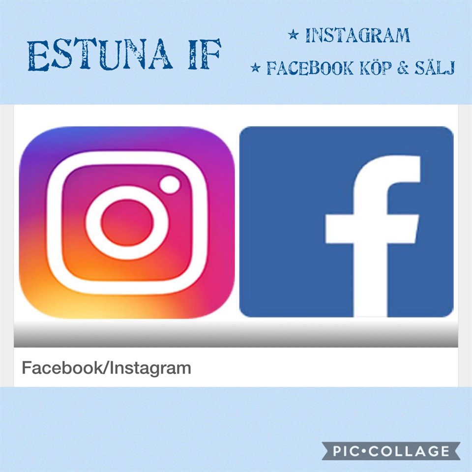 Nu har vi i föreningen startat ett: • Instagram konto för Estuna IF där man kan följa oss i föreningen I smått och stort! (Sök på Estuna IF på instagram) Och en: * Köp och sälj grupp på Facebook som heter: ”Estuna IF Köp & Sälj” som ni gärna får följa oss på och fynda/sälja träningskläder mm. Vi har ju sen tidigare ett vanligt Facebook konto i föreningen som heter " Estuna IF" där vi lägger ut lite smått och stort om vad som händer i föreningen i allmänt som tex status i skidspåret, friidrotten, innebandyn, lilla Vasaloppet, Tunakampen, Svanbergaloppet, midsommarfirande mm. Sån info som kanske inte alltid skickas ut i alla våra träningsgrupper. Så följ oss gärna där för att inte missa något! 😊