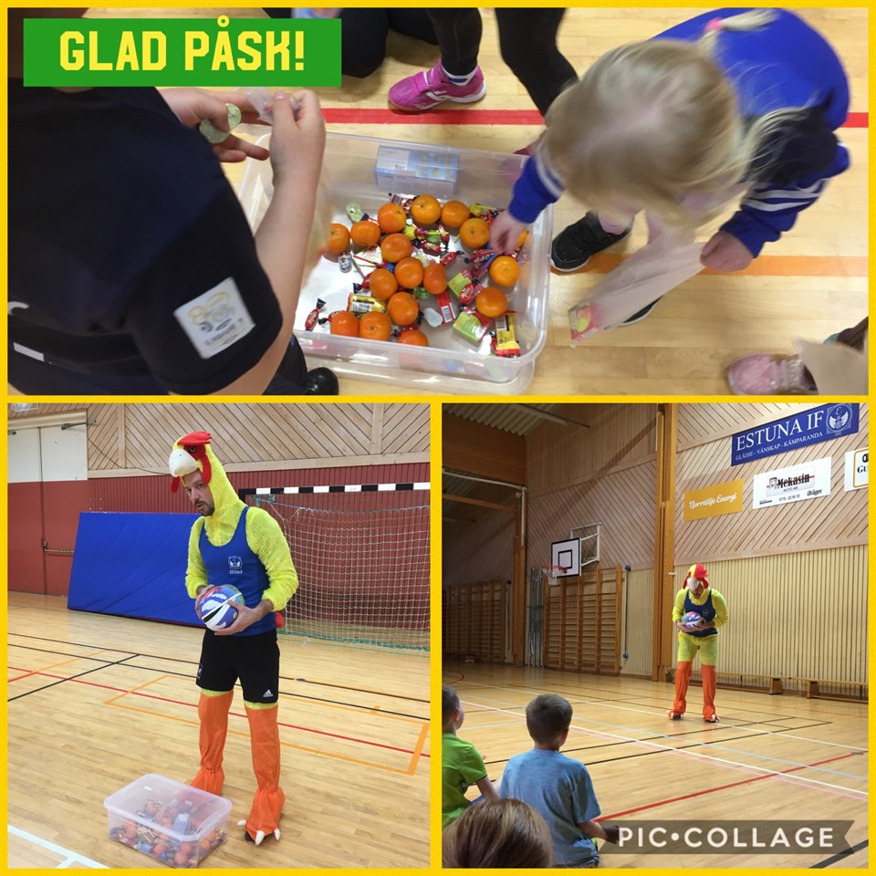 Vilken tur att ”Tuppen Sture” kom med allt godis till vår traditionella godisstafett! Räddaren i nöden! 😃 Nu tar vi ett längre uppehåll med barngymnastiken, så börjar vi igen lördagen den 28/9 kl 11-12. Vet man redan nu att man inte kommer fortsätta på barngymnastiken till hösten så meddela gärna mig i god tid så vi kan planera gruppen. (Vi har barn i kö som vill börja) Lycka till alla ni som ska springa Roslagsbroloppet i morgon! Tack för denna termin! Glad påsk! 🐥 Önskar Anna och Katarina