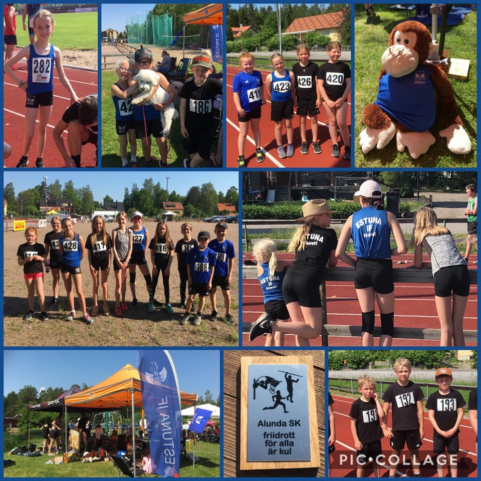 Hejsan alla föräldrar och barn på barngymnastiken! Hoppas ni har det bra i värmen! 😊 Här kommer ett litet smakprov på vad våra duktiga barn/ungdomar gör på friidrotten i Estuna IF. Vi åker ofta på olika kamper/tävlingar runt om i Uppland där många andra klubbar också deltar, så som Hammarby, Tureberg, Uppsala, Enköping, Rånäs 4 H, Roslagsbro IF, Östhammar, och Ununge IF. mm. Som nu på Nationaldagen den 6/6 var vi iväg ett stort gäng till Alunda på en friidrottskamp. Här kommer en kopierad text ifrån vår hemsida: Marmakampen 2019 i Alunda blev en riktigt varm dag! Va alla kämpade väl trots att det var varmt hela dagen. Tur vi tog med två tält som skugga, solskyddskräm och mycket vatten för att klara av dagen! Men inget hindrar oss från Estuna IF att ha roligt och kämpa! 😃👍 Tack alla ni för en fantastisk dag tillsammmans! Flera nya personliga rekord sattes av flera av våra deltagare i de olika grenarna! En minnes medalj ifrån Marmakampen fick alla deltagare som deltog med sig hem. Sedan var det några som fick med sig guld, silver och brons med sig hem och det var: Flickor 7 år Nova Nirling tog silver i 60 meter Stina Persson tog brons i 60 meter och längdhopp. Flickor 11 år Lova Svärdhammar tog silver i kula och brons i höjdhopp. Pojkar 9 år Edvin Nilsson tog guld i 60 meter och guld kula och silver i längdhopp. Pojkar 11 år Frank Klareus tog guld i 60 m häck, guld 60 m, guld höjdhopp och silver i längdhopp. Lova Svärdhammar blev tilldelad ett pris för att vara Roslagsmästare i kula för flickor 11 år. Frank Klareus blev också tilldelad ett pris för att vara Roslagsmästare i både längdhopp och höjdhopp i klassen pojkar 11 år. Stort Grattis till er Lova och Frank! 😃 Resultatlistan klicka här: Marmakampen 2019 - Resultat Bilder Klicka här: Bilder Marmakampen 2019 Norrtälje Stadslopp 2019 Samtidigt som Marmakampen var i Alunda så deltog Cajsa Persson (född 2009) och Jens Persson på Stadsloppet i Norrtälje som är en sträcka på 5 km, som Roslagens Löparklubb anordnar. Cajsa kom in i mål på tiden 25,52 min, hon var den yngsta deltagaren som sprang 5 km. Bra jobbat! 😊