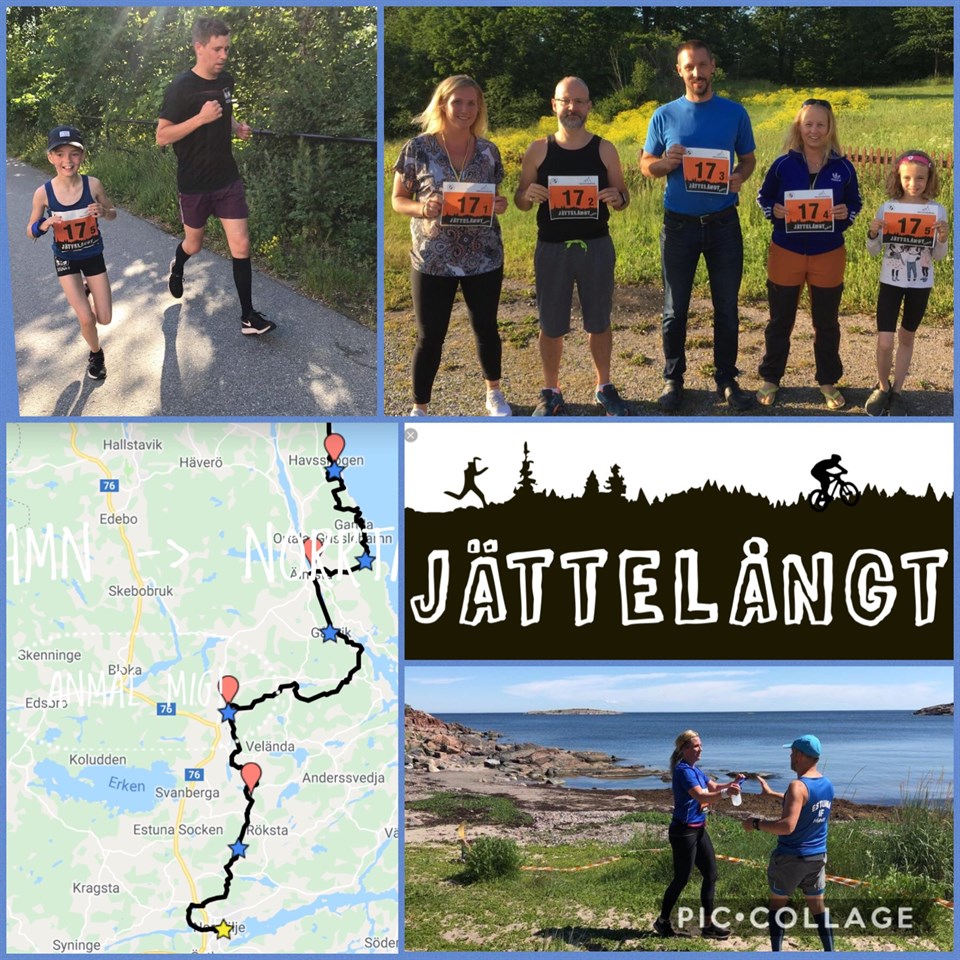 Igår lördag hade vi ett lag ifrån Estuna IF med Stafetten ”Jättelångt” som startar i Grisslehamn och målet är i Norrtälje. Sträckan var på ca 7 mil fördelat på 5 sträckor längs med Roslagsleden man springer med ett litet band som man ska transportera från Grisslehamn-Norrtälje. (Så man får inte tappa den) Alla lämpade på bra trots värmen, men med mycket stöd ifrån laget, familjen och publiken så kämpade vi på och ingen bröt loppet. Vårt lag sprang in på tiden ca 7 tim 20 min. De som sprang var Anna Åkerlund, Aidan Broadbridge, Martin Gyrulf, Lina Persson och Cajsa Person (Jens) Våran duktiga Cajsa Persson 10 år sprang hela 1,5 mil ifrån Roslagsbro-Norrtälje, hon är den yngsta deltagaren någonsin i ”Jättelångt”. Du är otrolig Cajsa! 😃 Det är nog inte många barn i 10 års åldern som sprungit så långt som 1,5 mil i ett svep, man kan se en intervju med Cajsa på Jättelångts Facebook sida som är tagen direkt efter loppet vid målgången. Vårt mixlag bestod av: 1. Grisslehamn-Skottviken 1 mil (Anna ) 2. Skottviken-Älmsta 1,5 mil (Aidan) 3. Älmsta-Söderbykarl, Erikskulle 2,1 mil (Martin) 4. Söderbykarl - Drottningdal 9 km (Lina) 5. Drottningdal-Norrtälje 1,5 mil (Cajsa + pappa Jens) Bra Kämpat alla! 😃 Efteråt firade vi med välförtjänt god mat tillsammans! Vi ser redan fram emot nästa år, då ev några av oss vill prova springa hela sträckan själv!