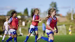Blå matchtröja, benskydd, strumpor, vattenflaska och uppsatt (om långt) hår gäller för samtliga spelare