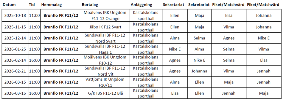 Moälvens IBK Ungdom F11-12 Orange (hemma) | 18 okt, 11:00 |