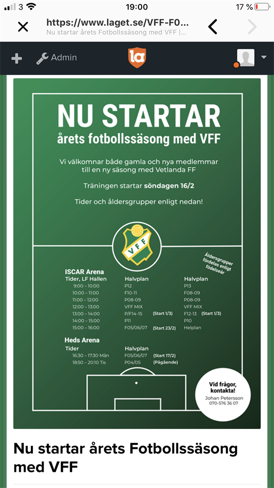 Det kommer inte finnas möjlighet att prova årets kläder på Vitalvallen som tidigare utlovat utan de finns istället på Intersport i Vetlanda. Där kan man prova dem denna vecka. Ni har till Söndag vecka 15 på er att göra er beställning, sen stängs sidan ner för sammanställning. Sidan kommer att öppna igen för fler tillfällen att beställa. Länkar för beställning https://team.intersport.se/vetlanda-ff https://team.intersport.se/kundservice/storleksguider/nike F10/11 8 apr 2020 0kommentarer