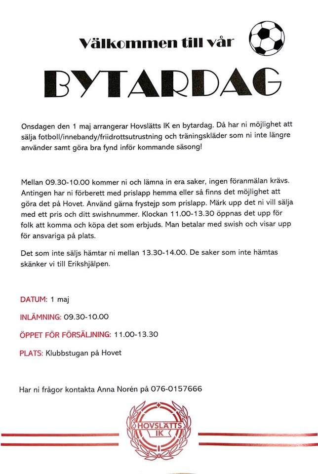 Bytardag på Hovet enligt bifogat dokument F-12 Fotboll 19 feb 2024 0kommentarer