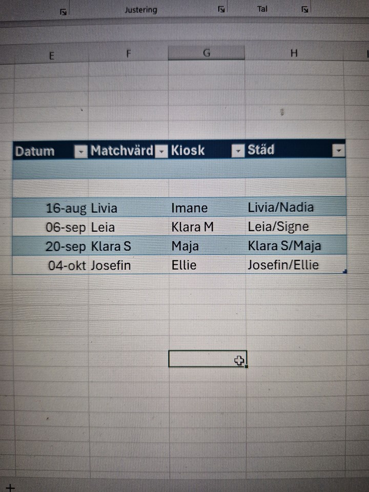 Här kommer ett schema för matchvärd, kiosk samt städ.