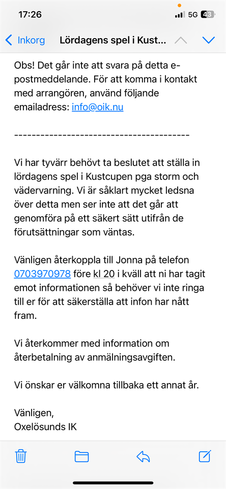Klicka på bekräftelselänken i det mejl vi skickat dig för att börja ta emot uppdateringar från Stigtomta IF F-13.